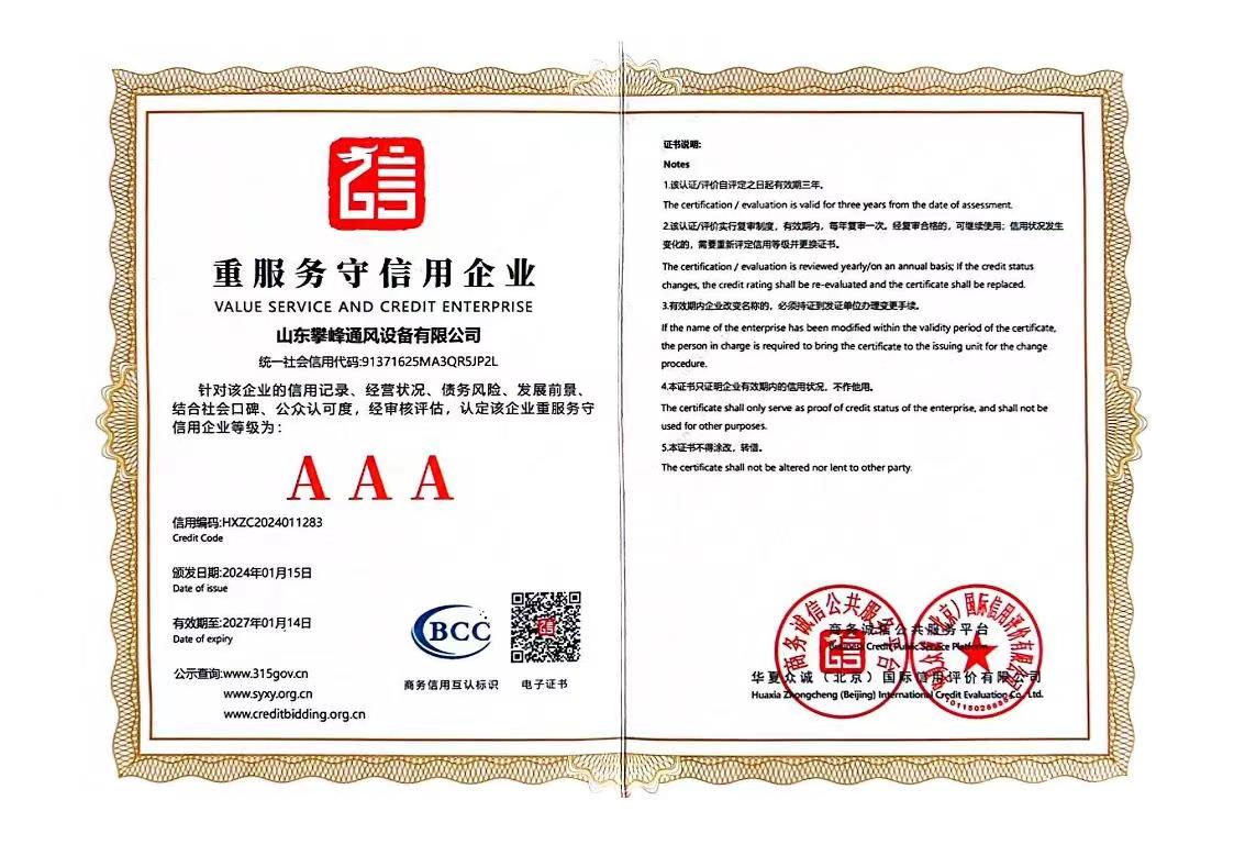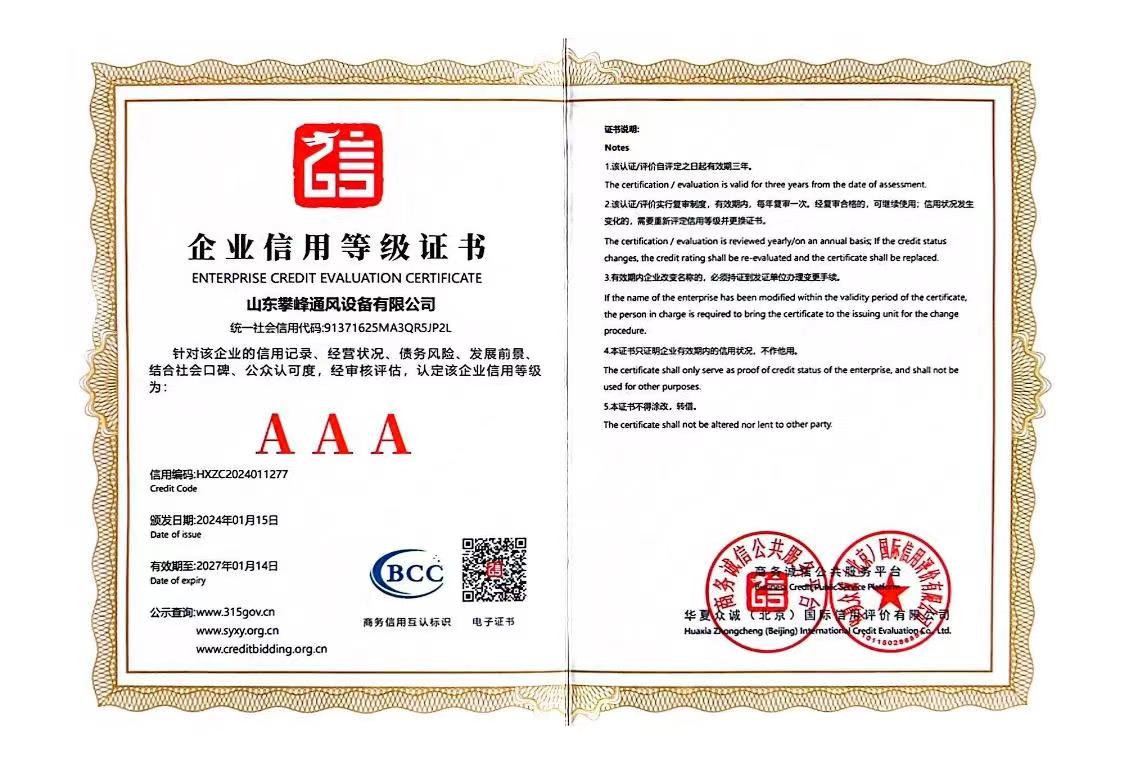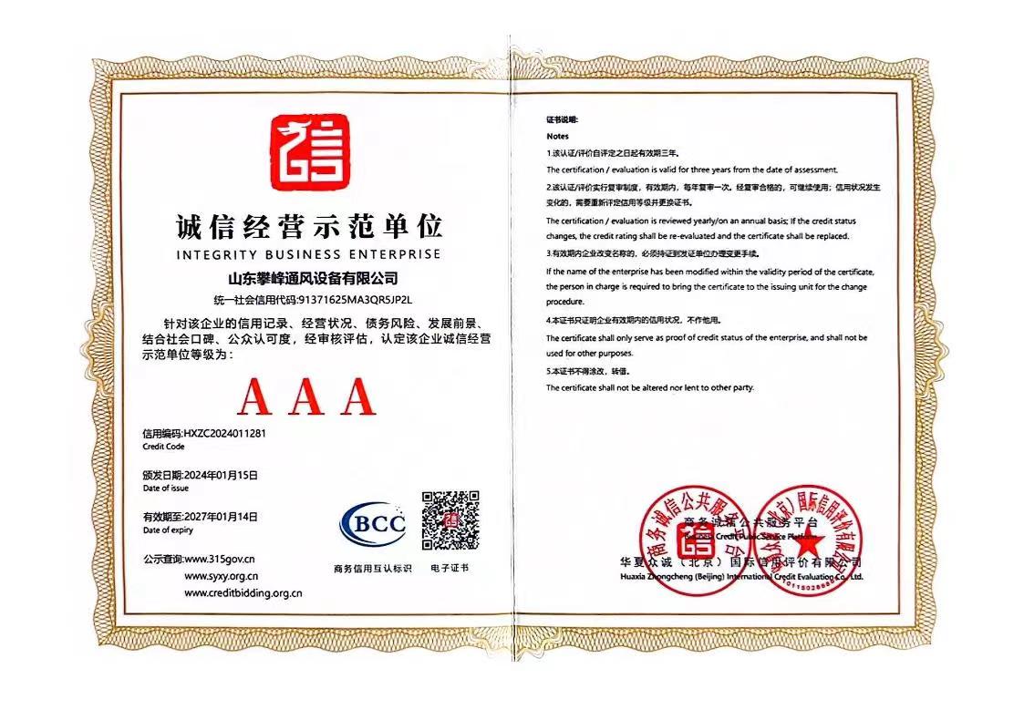 • AAA級企業等級證書